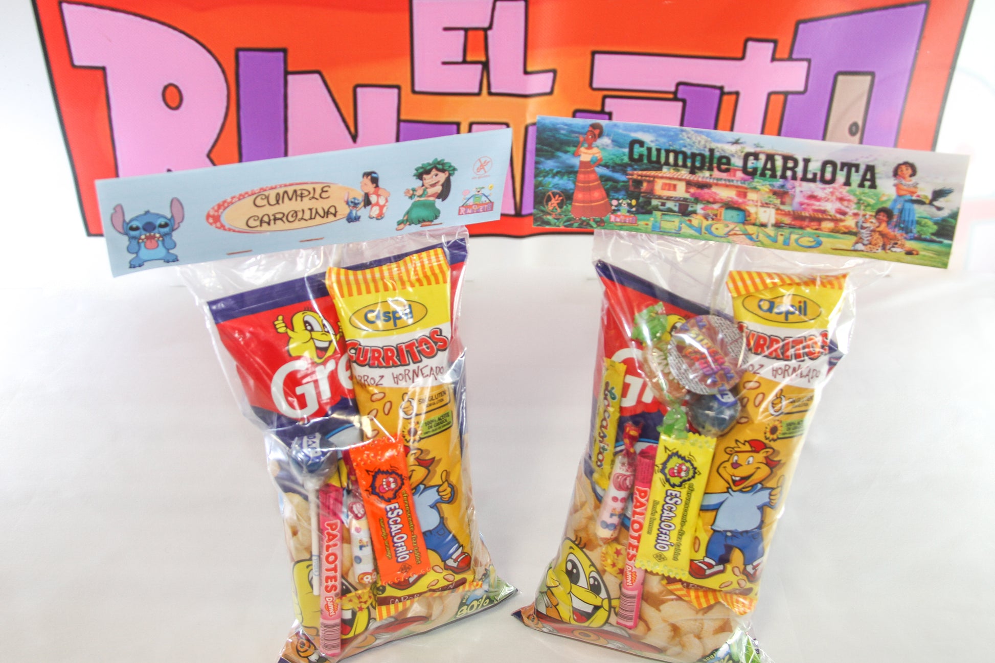 Bolsa de chuches con golosinas y snacks. Es un detalle original y bonito para cualquier evento, especialmente para regalar en los cumpleaños.